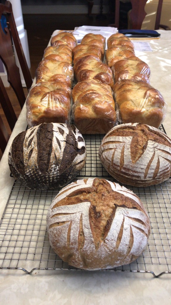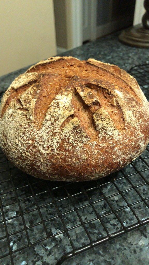 Here it is, my newest venture into the field of bread. It started because my oldest brother Richard went into the sourdough field, and darn that just irked me that he did and I didn’t. I tried to learn from him one Thanksgiving but alas, I was not a good student, and I felt overwhelmed by it all. Leaving it in his hands, I just ate it. What yummy goodness that was- but it wasn’t by my hands, hmph! Then Easter rolls around and we are all at my brothers home in CA and we all decide, ok, show us the bread. And he did. But, I still could not fathom me doing this. Yet, hmph, my other brother did. There they were, two boys doing what I really wanted to do, but my brain just scared me off it. Dang it. This was not happening…but it did. Then, ah ha, Thanksgiving rolls around again and my brother sends me some dehydrated sourdough starter from his stash. Well! That’s what it took, and then, my other brother made personal videos of all the steps and I was in-like-flynn! Since then, I have created my own flavors, my own style, and I ab-so-lute-ly love bread. I mean, who can resist fresh bread slathered with a schmear of good, cool butter? Better yet, toast it, schmear it, some homemade jam, slices of heaven! My hubby goes through a loaf a week if I let him.